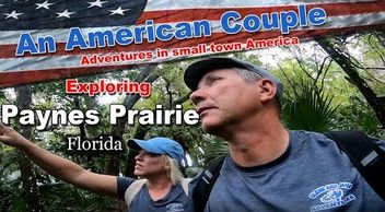 Glenn and Jane take their little blue MG Midget to the quiet campground at Paynes Prairie Preserve.